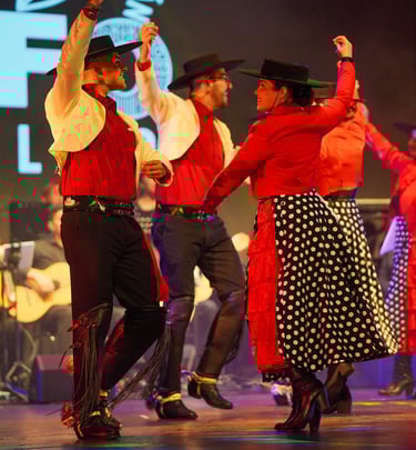 Nuestros cuadros folclóricos representan la rica cultura de Chile, con danzas y música que evocan la historia y tradiciones de nuestro país, interpretados por talentosos artistas con amplia trayectoria.